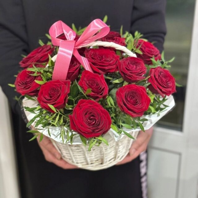 На фото представлен возможный вариант сборки. Декоративное и цветовое оформление может меняться в зависимости от наличия цветов и упаковочных материалов. Мы соберем максимально похожую композицию с использованием сезонных цветов и декоративно-цветового оформления.