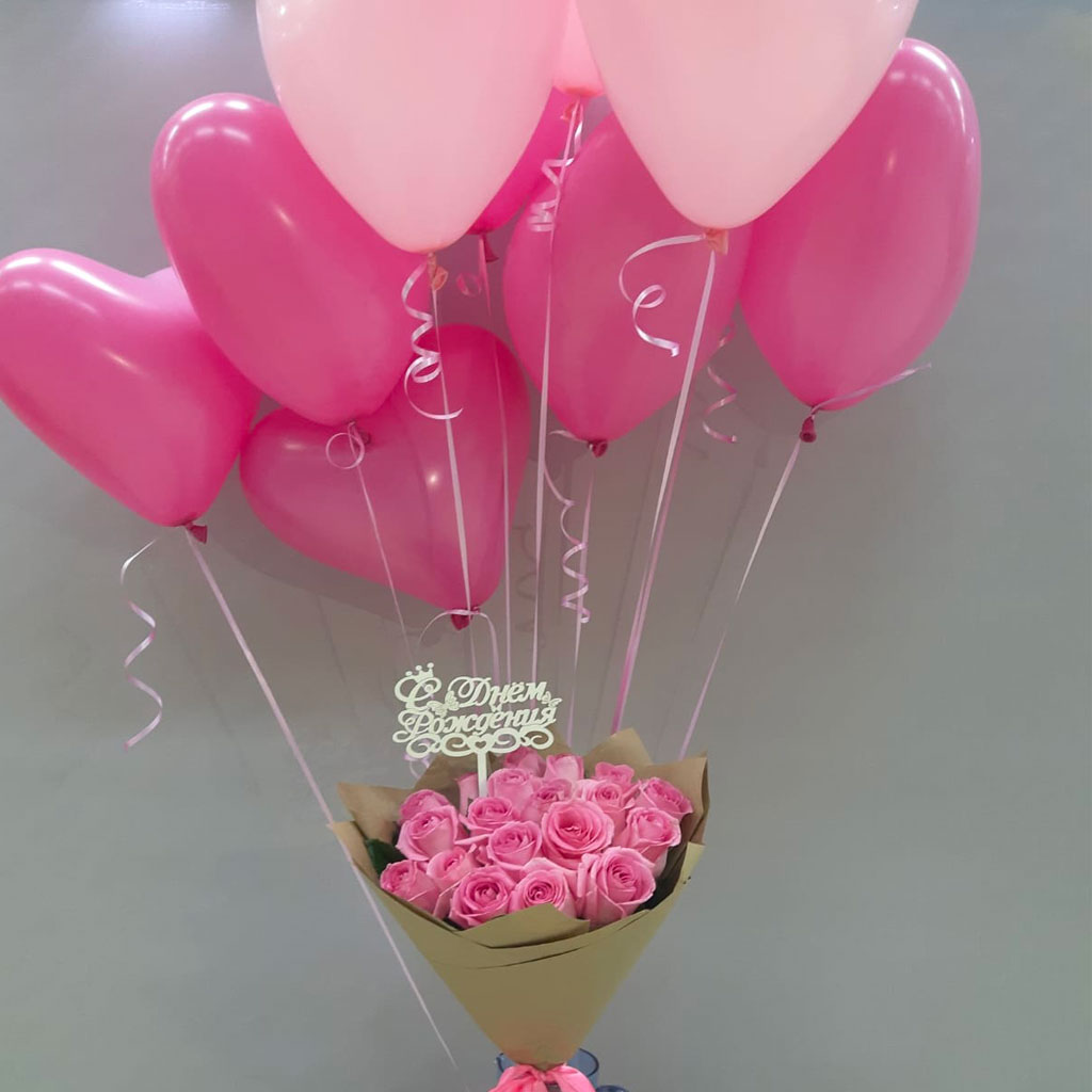 На фото представлен возможный вариант сборки. Декоративное и цветовое оформление может меняться в зависимости от наличия цветов и упаковочных материалов. Мы соберем максимально похожую композицию с использованием сезонных цветов и декоративно-цветового оформления.